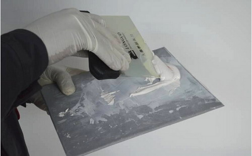 ①用刮板提起適量原子灰(根據損傷面積與損傷情況)。