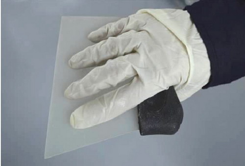 (7)如此重復地拌和,在這過程中注意觀察混合物顏色的均勻程度,直到原子灰充分拌和。如圖2-39所示。