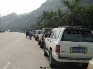 越野e族的車友們排成長(zhǎng)龍出發(fā)了